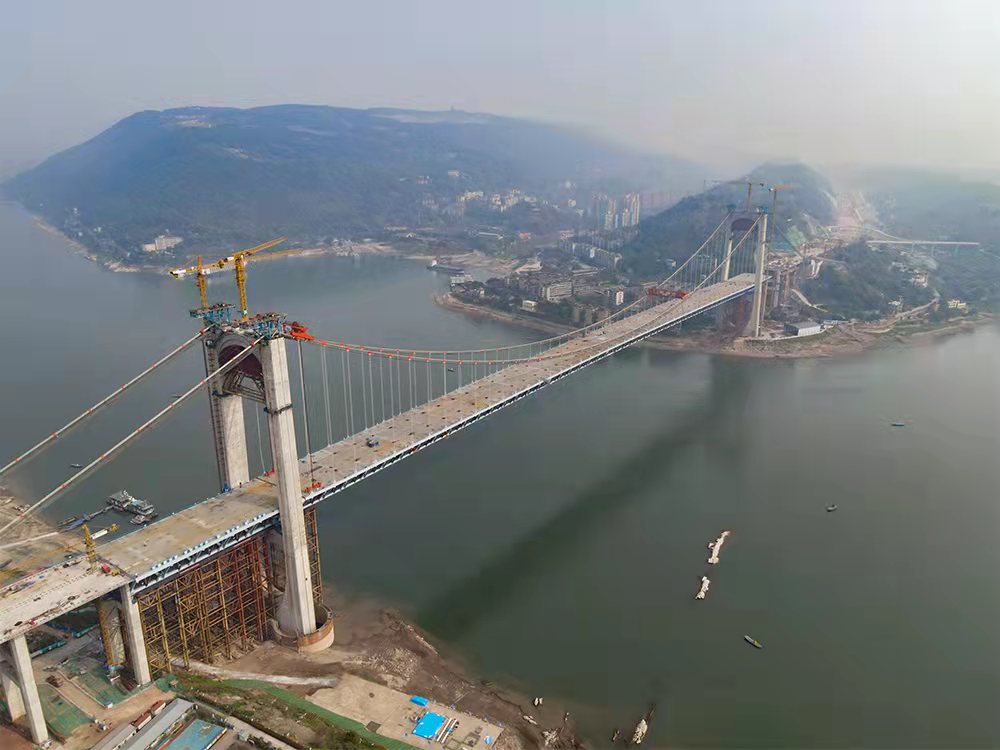 2022年3月15日,隨著最后一段鋼桁梁成功起吊,由招商交科主持設(shè)計的國內(nèi)最大跨度公軌兩用懸索橋——重慶郭家沱長江大橋順利實現(xiàn)合龍,標(biāo)志著大橋主體施工全部完成。大橋的索纜制造及上部安裝工作由招商交科下