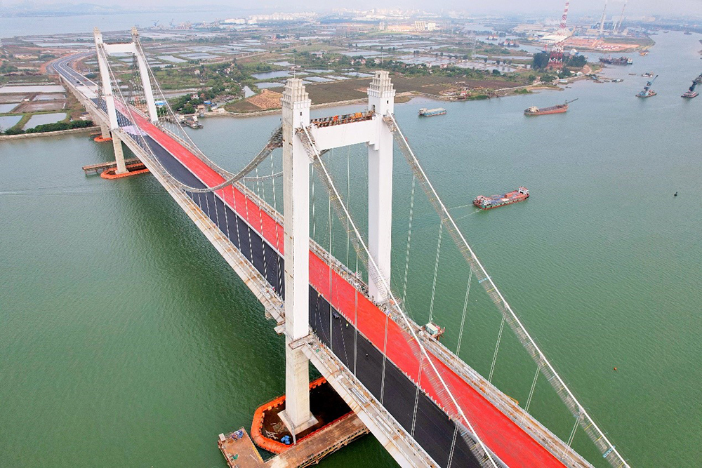 東江南支流港灣大橋位于廣東省東莞市沙田鎮(zhèn),是連接沙田港灣新城核心區(qū)域兩岸的重要通道,總長約2.92公里,主橋?yàn)?05米的五跨雙塔鋼箱梁自錨式懸索橋。大橋建成后將對(duì)推動(dòng)沙田區(qū)融入粵港澳大灣區(qū)“一小時(shí)經(jīng)濟(jì)生活圈”發(fā)揮重要作用。