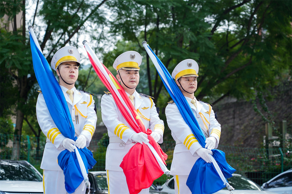 升旗儀式上,身著白色制服的儀仗隊(duì)員護(hù)著國(guó)旗、招商局旗,邁著整齊的步伐走向升旗臺(tái)。在《國(guó)歌》和《招商局之歌》的莊嚴(yán)歌聲中,五星紅旗和招商局旗先后冉冉升起,迎風(fēng)飛揚(yáng)。