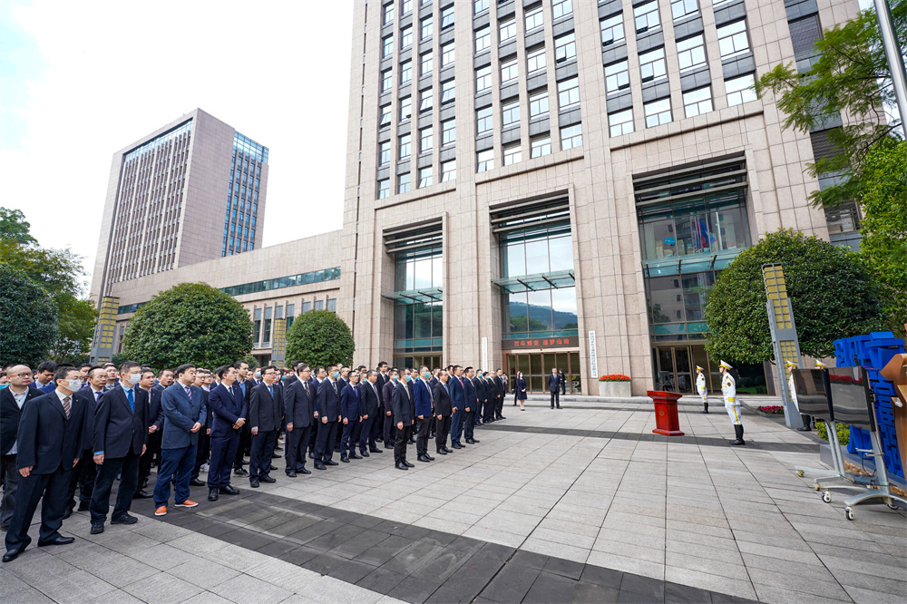 上午9時(shí)05分,招商交科在交科院廣場(chǎng)舉行了升旗儀式。領(lǐng)導(dǎo)班子,各部門及單位的員工代表300余人,齊聚現(xiàn)場(chǎng)。參加人員共同收看了集團(tuán)董事長(zhǎng)繆建民公司日講話視頻,公司董事長(zhǎng)劉偉講話,總經(jīng)理?xiàng)顕?guó)峰主持儀式。