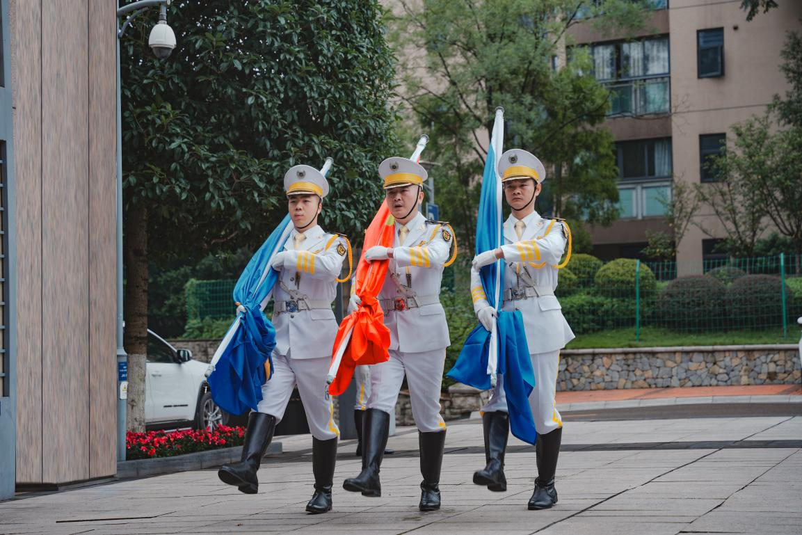 上午9時零5分,招商交科在交科院廣場舉行了升旗儀式。招商交科在家領(lǐng)導班子,各部門及單位員工代表,部分在渝招商系單位員工代表300余人參加儀式。