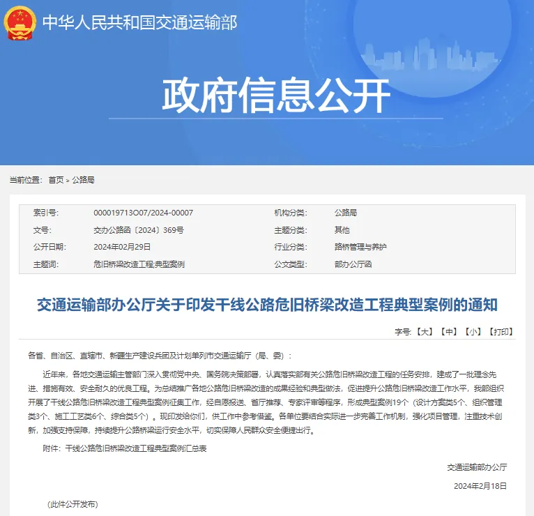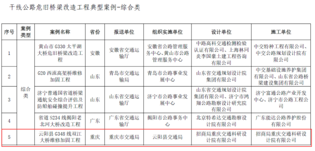 祝賀!招商交科橋梁加固EPC項目入選交通運輸部干線公路危舊橋梁改造工程典型案例