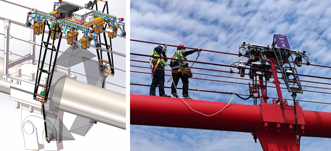 (圖為招商交科研發(fā)的主纜檢測(cè)機(jī)器人與橋檢綜合指揮車(chē))