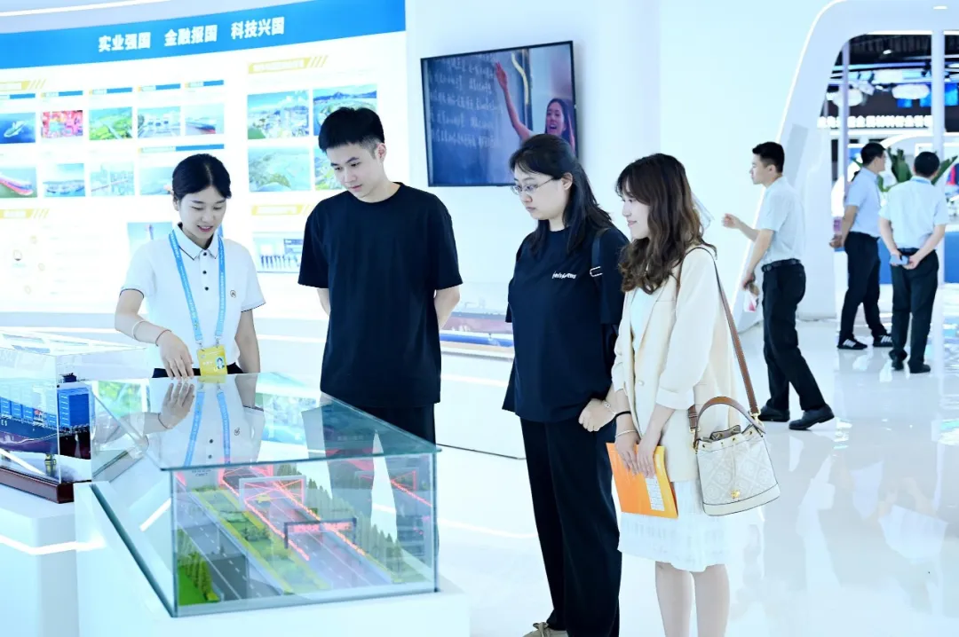 展廳介紹了集團交通物流、綜合金融、城市與園區(qū)綜合開發(fā)、戰(zhàn)略性新興產(chǎn)業(yè)等業(yè)務情況,積極展示服務成渝地區(qū)雙城經(jīng)濟圈、西部陸海新通道建設成效。高端游輪、地標性大橋、智慧隧道等模型,吸引了眾多參觀者駐足。