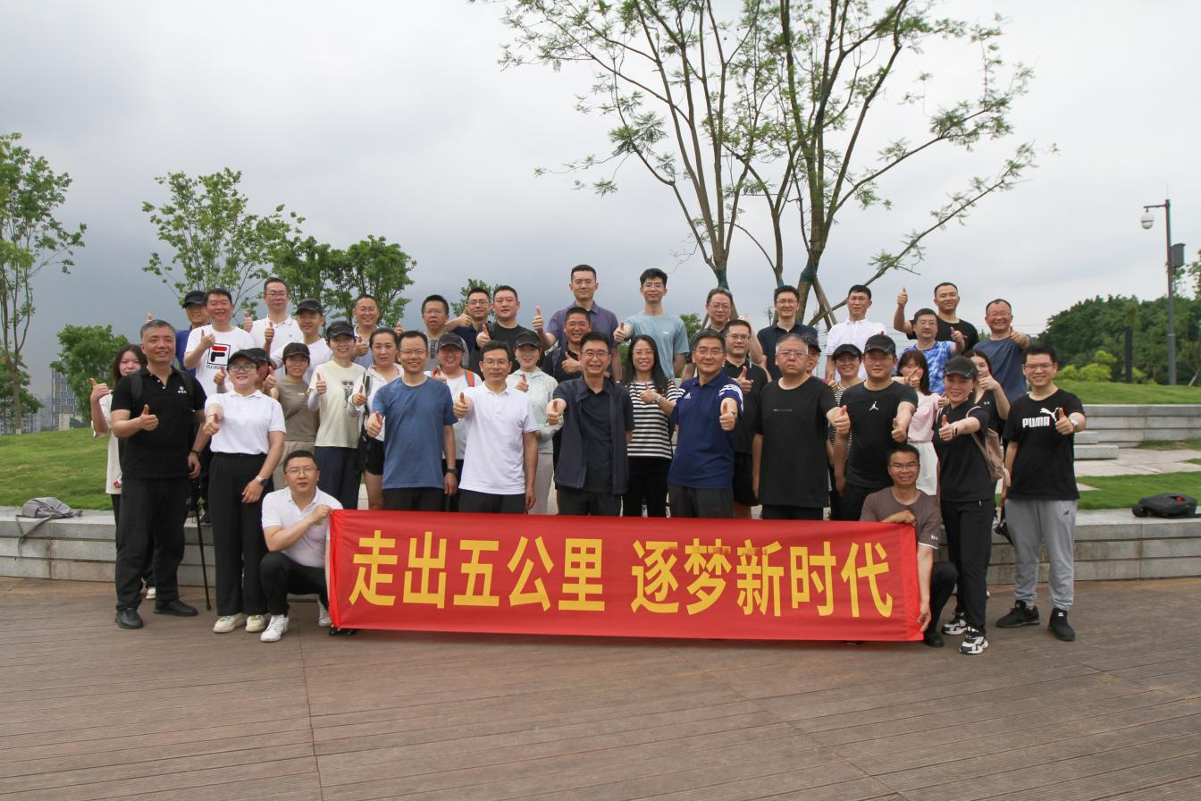 活動(dòng)結(jié)束之際,清風(fēng)徐來,陽光微現(xiàn),大家洋溢著勝利的微笑,全體人員齊聲喊出“走出五公里,逐夢(mèng)新時(shí)代”,共同為打造“兩條曲線”、推進(jìn)“第三次創(chuàng)業(yè)”加油鼓勁。