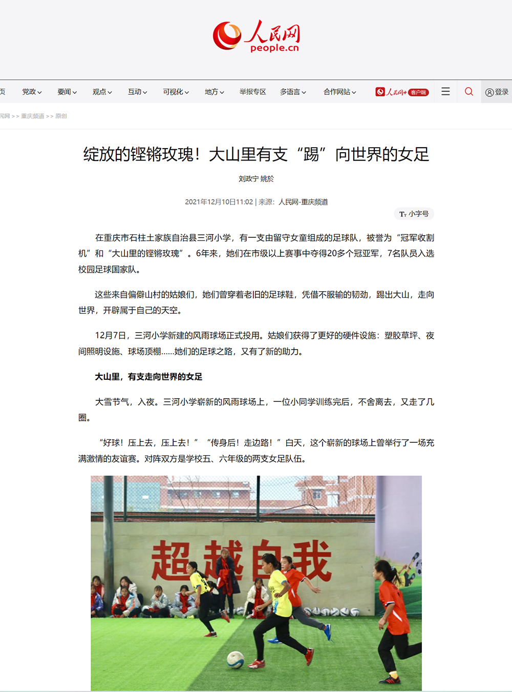 【轉(zhuǎn)載】人民網(wǎng):綻放的鏗鏘玫瑰!大山里有支“踢”向世界的女足